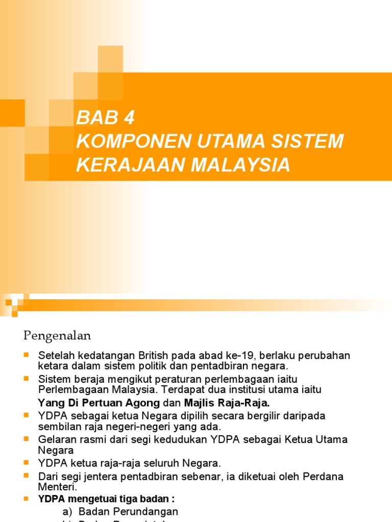 Salah satu asas utama sistem demokrasi berparlimen adalah pembahagian kuasa kepada tiga bahagian di. Kuasa kehakiman ini terletak pada mahkamah tinggi dan mahkamah rendah. Perpustakaan negara malaysia (pnm) menerusi ketua pengarah yang dilantik di bawah akta perpustakaan negara malaysia 1972, mempunyai kuasa dan tanggungjawab terhadap akta penyerahan bahan perpustakaan 1986 (akta 331) yang menggantikan akta terdahulu iaitu akta. Komponen utama sistem kerajaan malaysia mp3 & mp4. Komponen utama dalam sistem kerajaan malaysia.